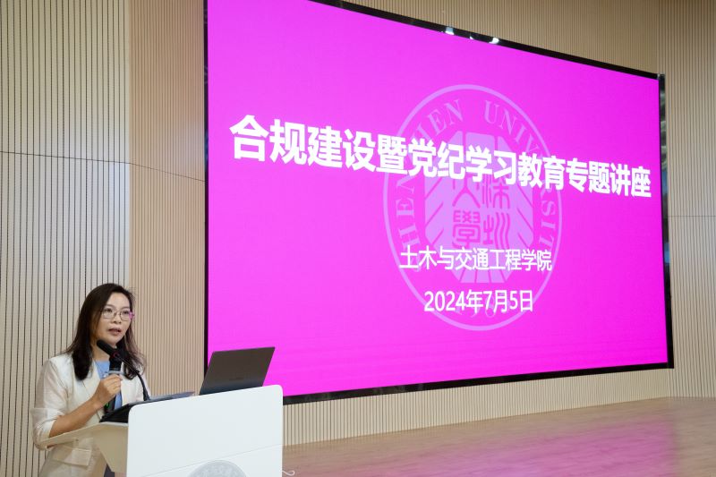 土木與交通工程學院于7月5日中午在A431報告廳召開合規建設暨黨紀學習教育專題講座。本次講座特邀深圳大學審計室段斌主任和科學技術發展研究院李潔老師作為主講嘉賓,以及計劃財務部顧園老師作為答疑嘉賓,就學校二級單位經濟風險及防控和科研項目經費政策及經費業務管理進行深入解讀。學院全體教職工參加本次講座,講座由學院黨委副書記陳碧霞主持。