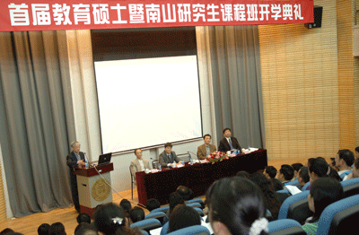 200803-18  首屆教育碩士暨南山研究生課程班開學典禮舉行3月16日,深圳大學首屆教育專業碩士暨南山研究生課程班舉行開學典禮。校長章必功、副校長邢鋒和市教育局副局長李長弓、南山區教育局局長曾令格等出席了開學典禮。 李長弓對深圳大學首屆教育專業碩士暨南山研究生課程班開班表示祝賀,并對新生提出希望:希望同學們能繼承和發揚人文科學研究的優良傳統,樹立優良學風,為將來的發展打下堅實的基礎。...