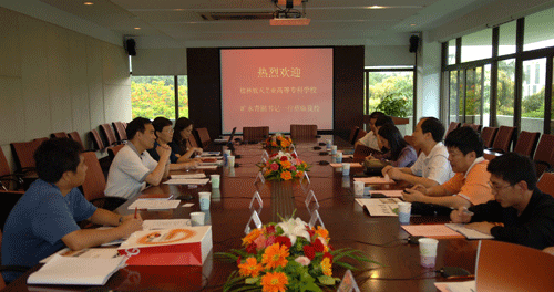 200805-12  桂林航專黨委副書記一行來我校參觀交流5月6日下午,桂林航天工業(yè)高等??茖W(xué)校黨委副書記、紀(jì)委書記曠永青率部分職能部門、教學(xué)單位的負責(zé)人一行7人來我校參觀交流。我校黨委副書記、紀(jì)委書記陶士平,黨委辦公室、學(xué)生處、招生就業(yè)辦公室、外國語學(xué)院、管理學(xué)院負責(zé)人與曠永青一行在辦公樓201舉行座談?!? 陶士平首先代表深圳大學(xué)對曠永青一行的到訪表示熱烈的歡迎。他向客人們簡要介紹了深圳大學(xué)的發(fā)展歷程。針對客人提出的校風(fēng)、學(xué)風(fēng)建設(shè)問題,陶士平...