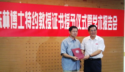 200806-30  南加州大學陳林博士受聘為醫學院首個特約教授6月23日上午,我校在圖書館二樓會議室舉行聘請美國南加州大學陳林博士為醫學院特約教授的聘任儀式,副校長陳思平、醫學院籌建辦負責人劉志剛與籌建辦全體老師及相關專業研究生20余人出席了聘任儀式。 陳思平副校長致歡迎詞,他指出,陳林博士成為我校醫學院成立以來第一個特約教授,具有重要的意義。歡迎陳林這樣高水平的人才加入深大,將為深圳大學醫學院的創建起推動作用。 陳林教...