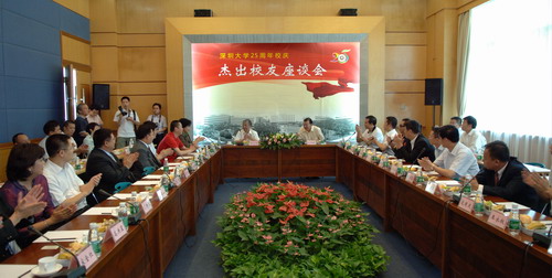 乘深圳大學25周年校慶之機,來自全國各地的校友返回母校,為母校的建設建言獻策,為母校的未來添磚加瓦。9月3日下午,深圳大學25周年校慶“杰出校友座談會”在國際會議廳D廳舉行。校黨委書記江潭瑜、校長章必功、校黨委副書記陶士平、陶一桃、副校長阮雙琛、邢鋒、陳思平、李永華等出席會議,來自全國各行各業的49名杰出校友也參加了會議。 江潭瑜書記在致辭中代表深大對各位校友來校參加校慶典禮表示熱烈歡迎和衷心感謝...