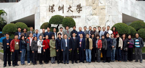 2008年12月31日上午,深圳大學2009年度工作會議在國際會議廳D廳舉行。校領導江潭瑜、章必功、陶士平、陶一桃、阮雙琛、邢鋒、陳思平、李永華、李鳳亮出席會議,各學院院長、基層黨委領導、機關部處事和教輔單位代表參加了會議。