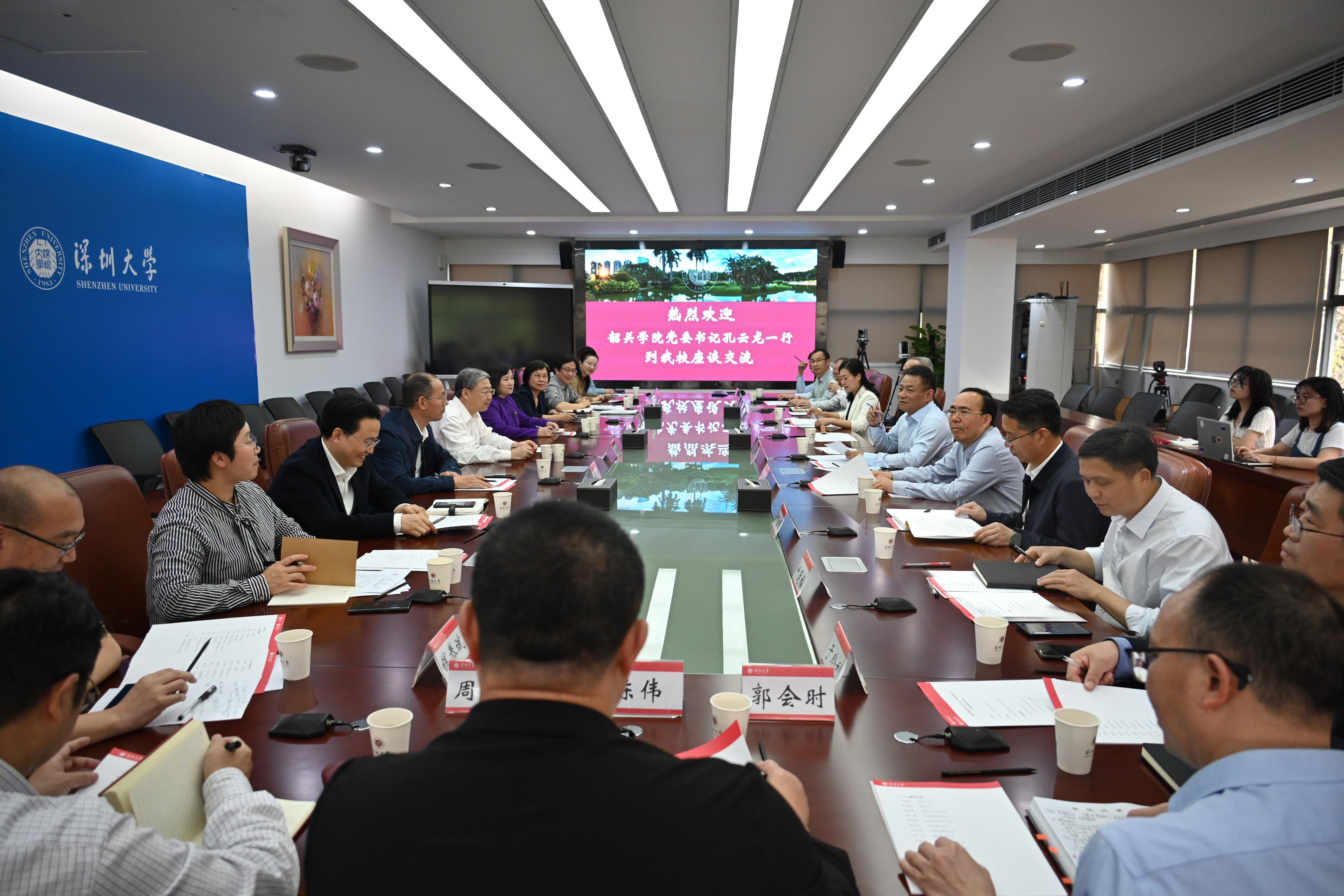 3月9日下午,韶關學院黨委書記孔云龍,黨委副書記姚紅光,副校長趙三銀、何金明一行到深圳大學調研交流。深圳大學黨委書記李清泉、副校長張曉紅會見來賓,雙方在匯元樓201會議室展開座談,張曉紅主持座談會。