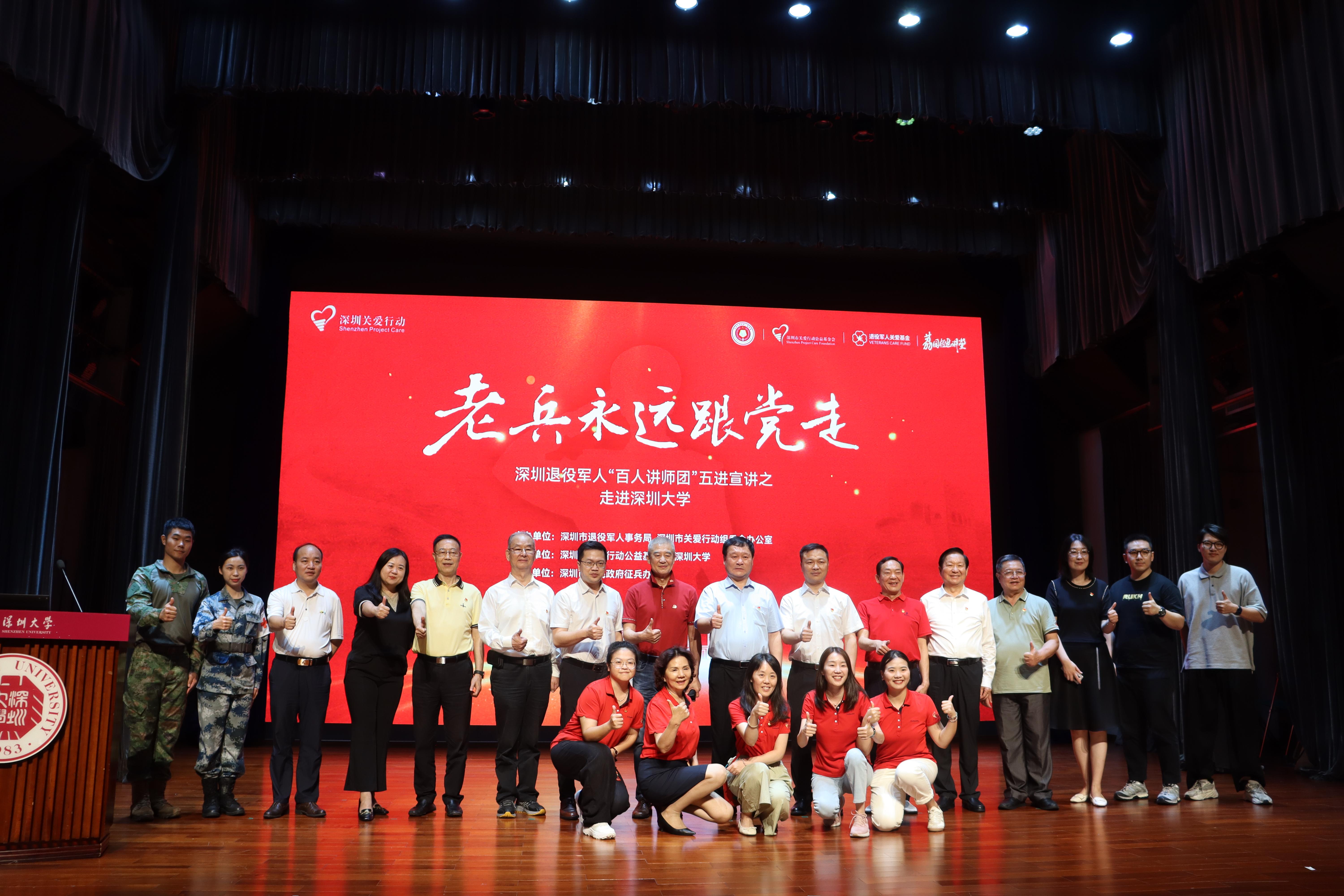 6月18日,由深圳市關愛行動公益基金會(下稱“關愛基金會”)聯合愛心伙伴單位承辦的“老兵永遠跟黨走——深圳退役軍人‘百人講師團’五進宣講”活動走進深圳大學,在粵海校區國際會議廳舉辦。深圳市退役軍人事務局黨組成員、副局長王文全,深圳大學黨委副書記吳報水,深圳市關愛行動公益基金會理事長、市商務服務類行業協會聯合黨委第一書記張占恒出席活動。深圳退役軍人“百人講師團”講師劉坤德、周順斌、段亞兵以親身經歷圍...