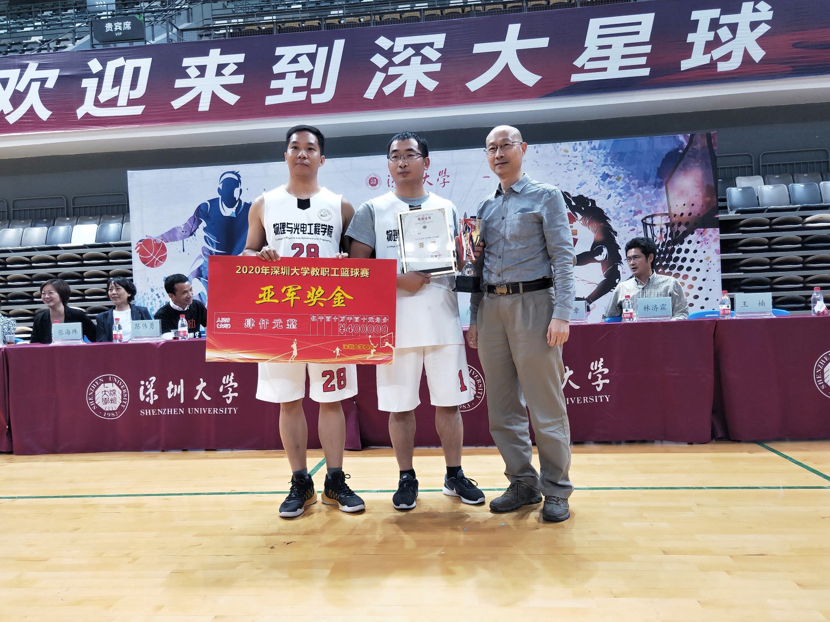 2020年11月27日西麗籃球館,“2020年深圳大學教職工籃球賽”上演最終巔峰對決,19年季軍后勤部挑戰衛冕冠軍物理與光電學院。兩支球隊都是小組賽一路走來保持全勝戰績,此番對決可謂棋逢對手,將遇良才,比賽一開始就精彩紛呈。后勤部此役可謂眾志成城,統一著裝的拉拉隊陣容強大,后勤部主要領導在王志忠主任的帶領下悉數到場站腳助陣,氣勢上更勝一籌。衛冕冠軍物理與光電學院,隊內陣容強大,既有高中鋒又有強力控衛,后勤部雖然隊員身高不占據優勢,但打法靈活,反擊快攻打得有聲有色。雙方比分交替領先,比賽進入膠著。最終,后勤部靠著頑強的拼搏精神,在終場47:46,1分險勝,奪得最終冠軍。以下是其他比賽比分:
