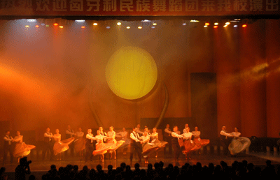 舞蹈團給我們帶來的是改編的19世紀舞劇《太陽傳奇》。該劇共分為兩幕,由“春天的黎明”、“晨光中的祭祀”等15個環節組成。該劇的背景音樂吸收了東歐民間音樂的質樸曲調,將二胡、薩克斯,鼓樂,銅管和小提琴完美融合,整部舞劇從古老的匈牙利民間傳說演繹到清新神秘的現代都市。臺上,由燈光虛擬而成的日月星辰?四季輪回的景象更讓觀眾盡享來自遙遠他國的獨特視覺氛圍。盡管彼此存在語言溝通上的障礙,但是藝術無國界,精湛、充滿激情的舞蹈演出感染了在場的所有人,雷鳴般掌聲一陣又一陣回響,連觀看的小朋友也不禁模仿著演員扭動著身體。演出結束后,校學生會主席向舞蹈團贈送了紀念品。