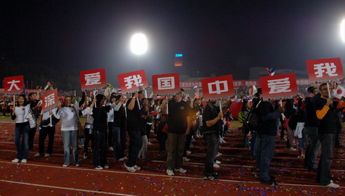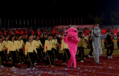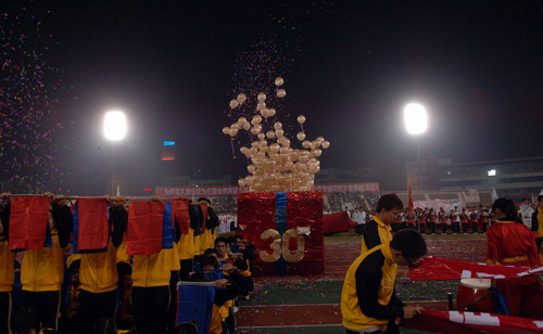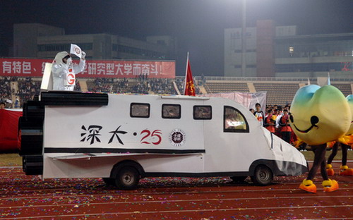 “今夜,荔園歡騰,我們以活力四射的運動會開幕式演繹冬天的火熱。”12月1日晚,章必功校長的開幕詞,道出了全校師生迎來一年一度校運會的喜悅與激情。深圳大學2008年運動會在田徑運動場開幕。校領導江潭瑜、章必功、陶士平、陶一桃、阮雙琛、邢鋒、李永華,各學院、研究生部、體育部、社科部、留學生部、機關各部、處、室負責人出席開幕式。副校長邢鋒主持開幕式。