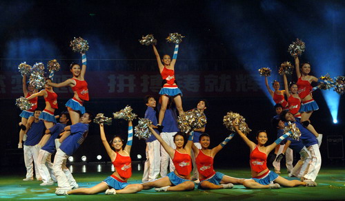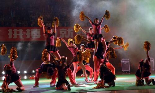 閉幕式上舉行了啦啦隊表演評分賽,我校18個學院的啦啦隊為觀眾們呈上了異彩紛呈的表演。個性的服裝設計、多樣的隊形變化、高規格的技術動作,加上隊員們燦爛的笑容和動感的舞姿,迎得了觀眾們一陣陣的熱烈掌聲。