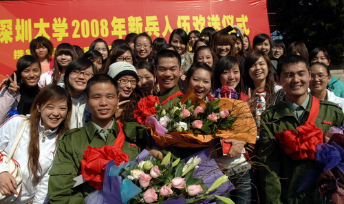 12月10日上午,我校舉行了深圳大學2008年入伍學生座談會及新兵入伍歡送儀式。校黨委副書記陶一桃、副校長李永華,校武裝部、學生處及入伍同學所在學院領導出席了座談會和歡送儀式。