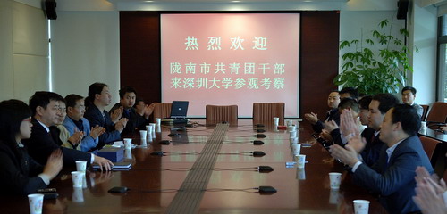 隨后,李永華與隴南市共青團干部親切會談。李永華從學校的辦學理念、辦學特色、學科門類、師資配備、學位層次、生源、建設規模和未來10年的規劃等方面全面介紹了深圳大學25年的創業歷程,介紹深圳大學在過去的25年里創造了許多國內高等教育的第一,培養了一批杰出校友,并特別闡釋了“特區大學、實驗大學、窗口大學”的辦學目標和“腳踏實地,自強不息”的深大精神。他表示,深圳大學一定認真完成黨中央、國務院和深圳市委市政府下達的各項任務,配合好隴南市抗震救災總指揮部的各項工作。