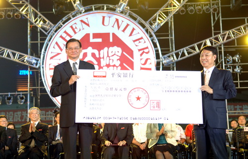 黨委書記江潭瑜代表學校接受中國煙草總公司深圳市公司向深圳大學捐贈獎學金。為推動高教事業發展,鼓勵我校學生勤奮學習、刻苦鉆研,中國煙草總公司深圳市公司捐資1000萬元人民幣,在我校設立“深圳大學好日子獎學金”,每年用100萬元獎勵100名品學兼優的學生,表現出了社會各界對深圳大學發展的關心和支持。