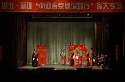 為弘揚中華民族的傳統文化、豐富我校校園文化,我校宣傳部和校團委共同承辦了此次活動。這次活動是“08迎春京劇深圳行”活動系列之深大專場,由深圳市委宣傳部、深圳市文化局和湖北省文化廳、湖北省京劇院共同主辦。深圳大學專場共演出《女殺四門》、《林沖夜奔》、《春秋亭》、《戰宛城?思春》、《十八羅漢收大鵬》等五場折子戲。