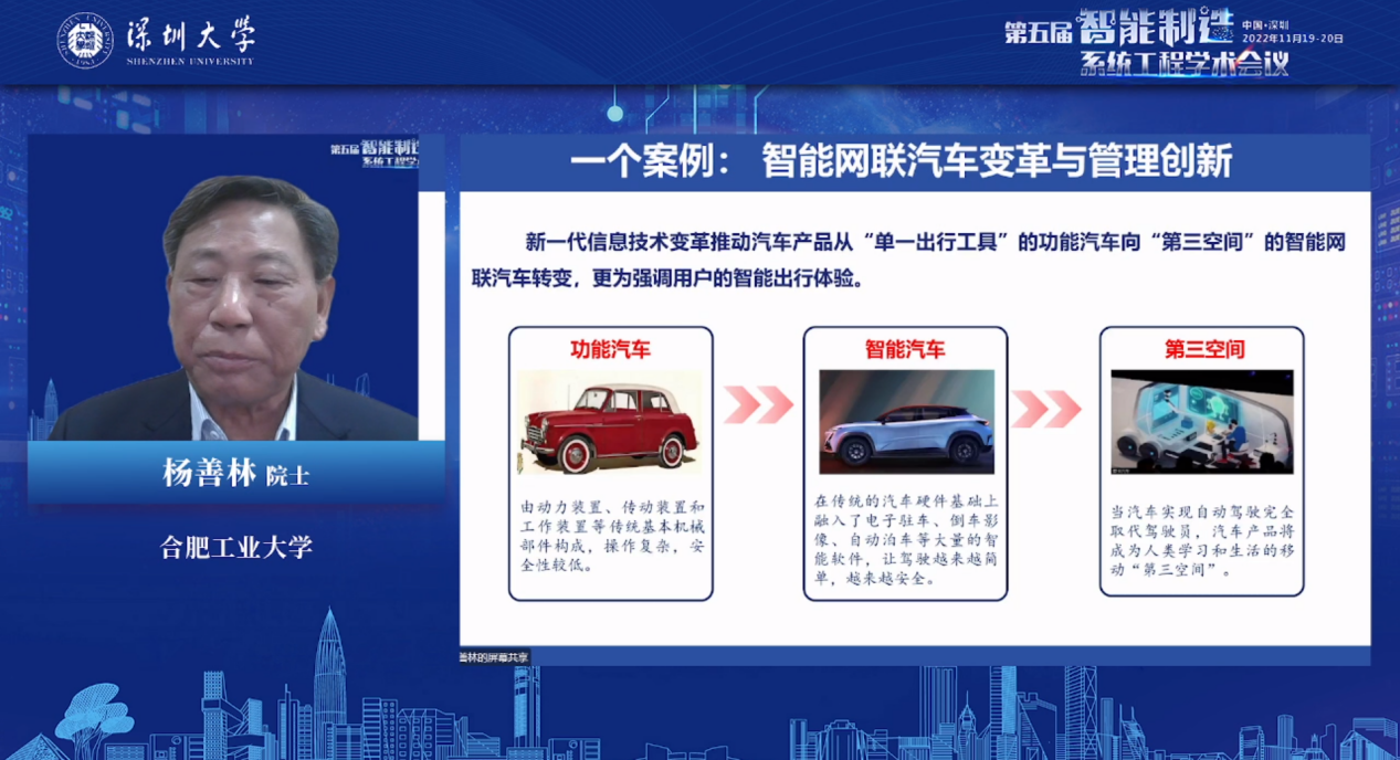 深圳大學(xué)校長、中國科學(xué)院院士毛軍發(fā),中國系統(tǒng)工程學(xué)會理事長、研究員楊曉光,中國系統(tǒng)工程學(xué)會智能制造系統(tǒng)工程委員會主任、合肥工業(yè)大學(xué)教授劉心報(bào),深圳大學(xué)管理學(xué)院副院長、教授周志民發(fā)表致辭;中國工程院院士楊善林、陳曉紅,國家基金委管理科學(xué)部副主任劉作儀研究員做線上特邀報(bào)告;中國工程院院士謝和平、郭仁忠、丁文華、陳湘生以及三十多位國家級人才計(jì)劃入選者通過線上線下結(jié)合的方式參加和支持本次大會。