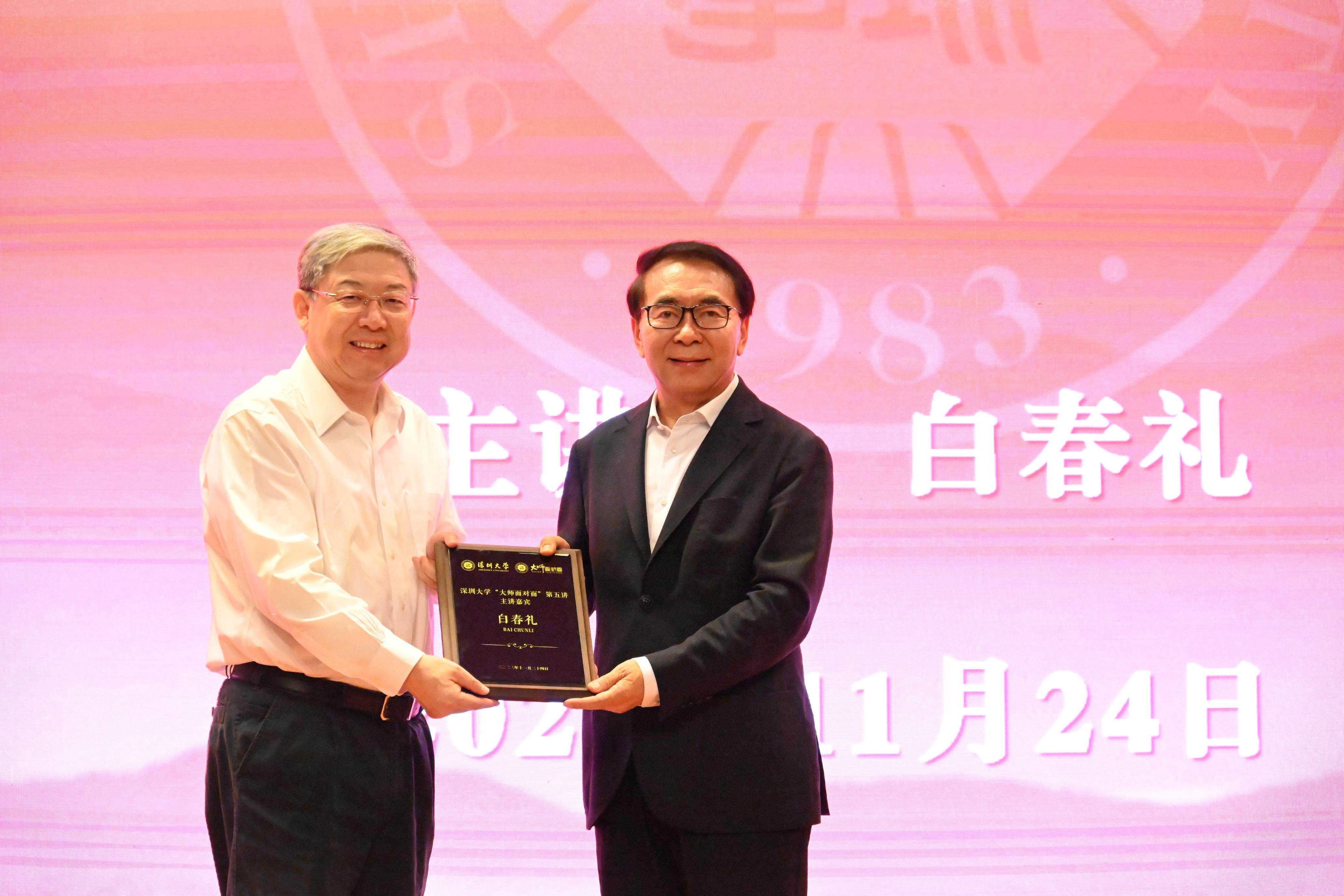毛軍發(fā)主持報告會。他介紹了白春禮院士為中國科學(xué)技術(shù)發(fā)展所作出的杰出貢獻(xiàn),并表示,創(chuàng)新是國運所在,創(chuàng)新強則國運強,創(chuàng)新弱則國運耽。習(xí)近平總書記強調(diào):“科學(xué)技術(shù)從來沒有像今天這樣深刻影響著國家前途命運,從來沒有像今天這樣深刻影響著人民生活福祉。”科技創(chuàng)新是時代之問,如何答好這份問卷,需要廣大科技工作者深入思考,不斷精進(jìn)自身技能。通過“大師”講述和分享,達(dá)到文理兼?zhèn)洹W(xué)術(shù)交流和教化育人并舉,是深圳大學(xué)堅持舉辦“大師面對面”系列講座的目的。