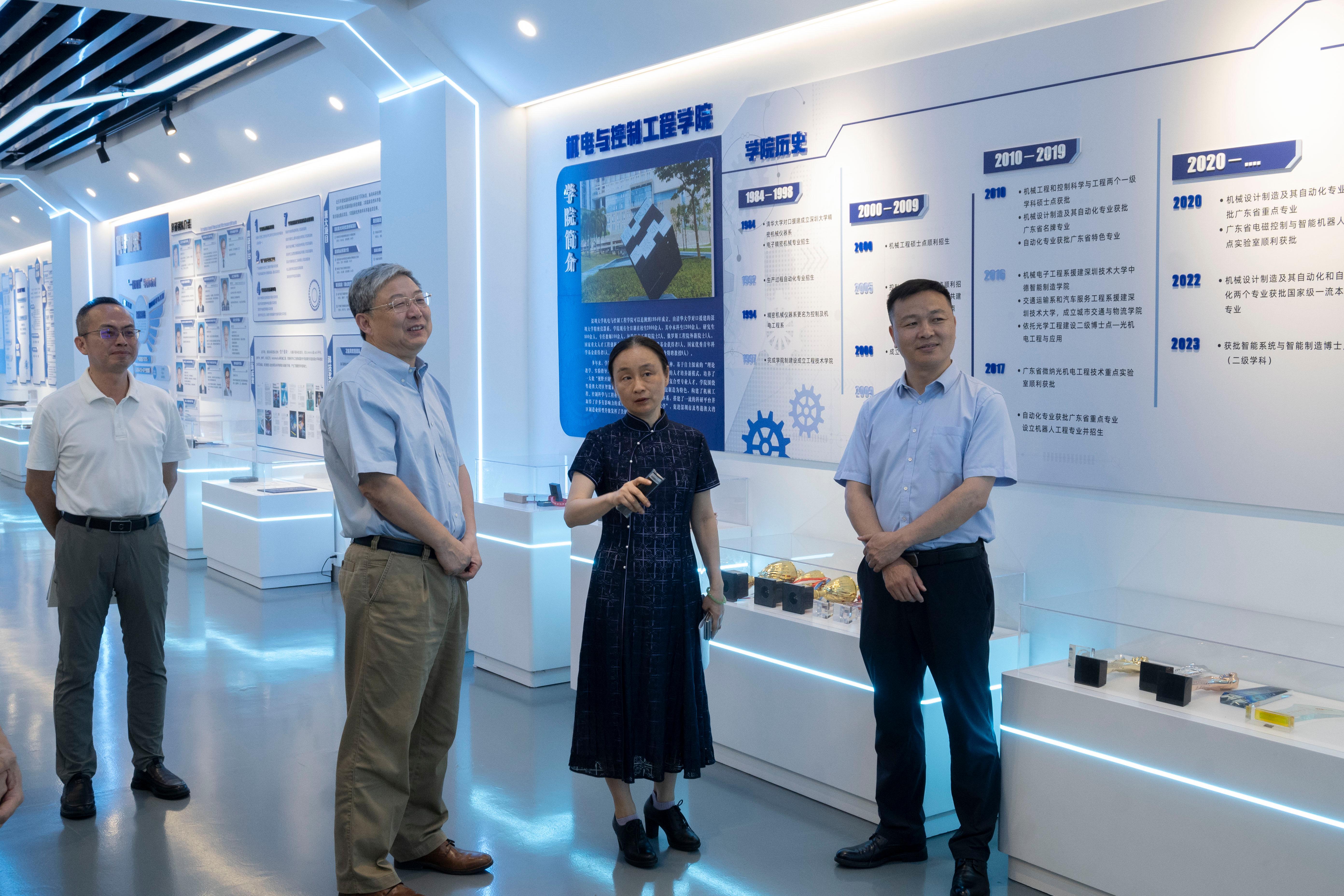 在機電與控制工程學院,李清泉一行聽取學院黨委關于學院領導班子建設、黨紀學習教育、黨建“雙創”、合規建設以及紀檢(監察)等工作情況的匯報,并參觀學院“智造長廊”,詳細了解學院發展建設成果。