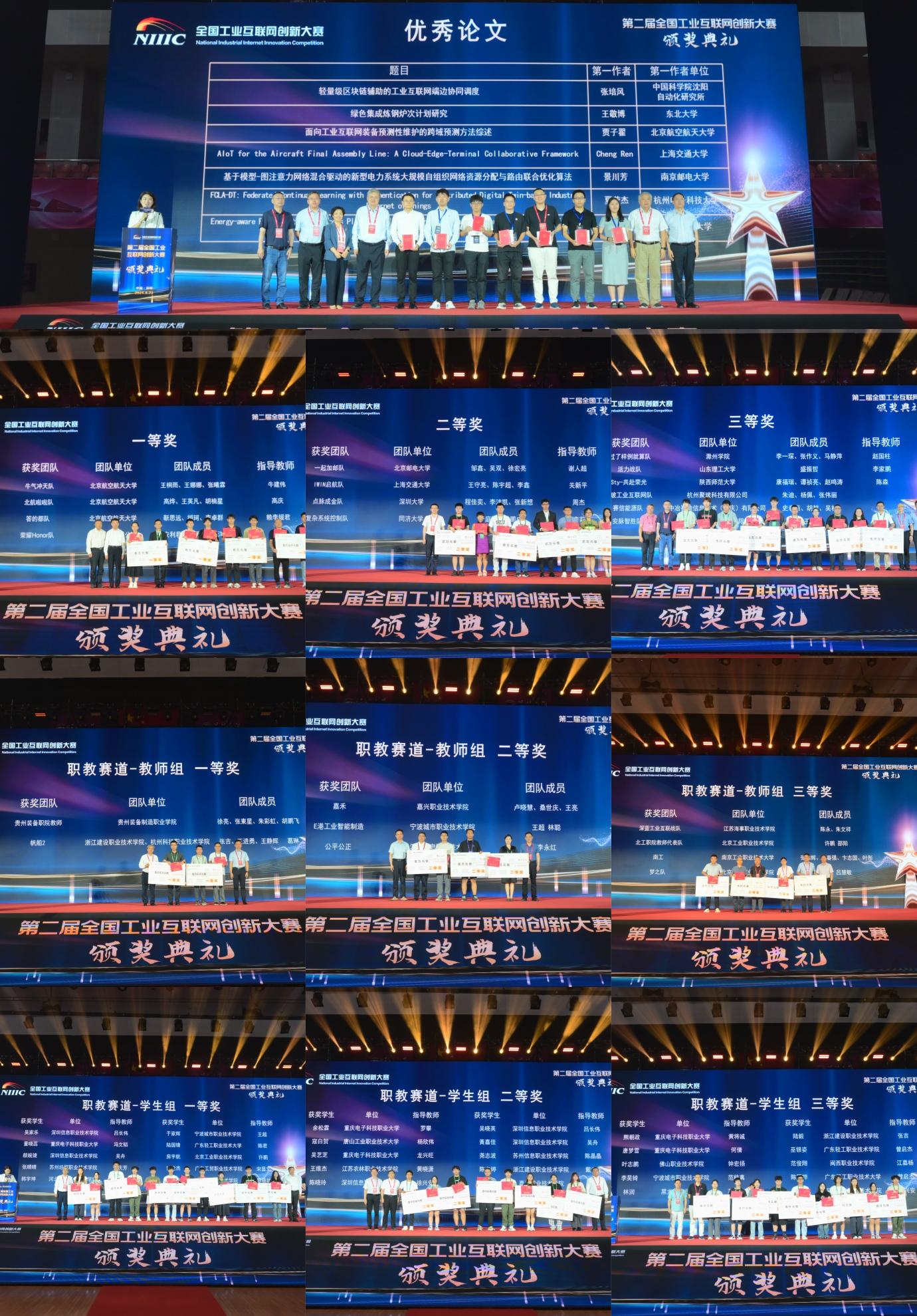 中國工業互聯網研究院副院長羅俊章主持頒獎典禮。中國工程院院士于海斌,工業和信息化部信息通信管理局一級巡視員王鵬,中國工業互聯網研究院黨委書記田川,國家自然科學基金委員會科學傳播與成果轉化中心副主任張志旻,廣東省通信管理局黨組成員、深圳市通信管理局局長肖永忠,深圳大學副校長李永華,深圳信息職業技術學院校長王暉等專家領導以及參賽選手、裁判員、指導老師出席典禮。