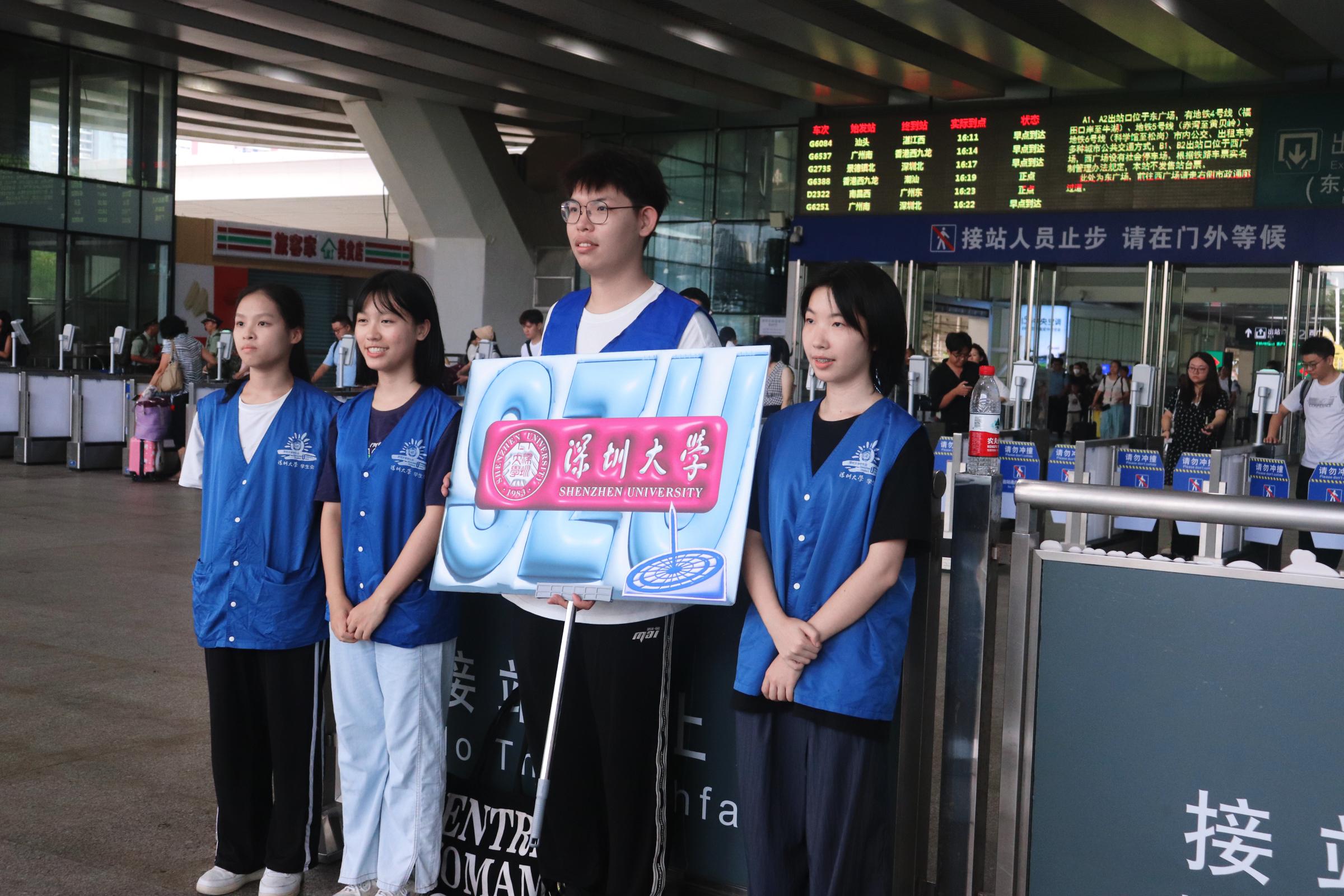 為了保障迎新工作的順利進行,學校提前招募了1000多位志愿者,在寶安機場、各大火車站及深圳大學各大校門迎接新生的到來。志愿者服務總義工時超4000小時,基于今年的“一站式”迎新系統,新生在系統提前錄入自己來深的交通信息即生成了報到行程單。校外站點對接、校內指引、行李搬運都有專人負責。各學院(部)設“點對點對接”并為每位新生安排對應的“迎新使者”,班主任、輔導員和“迎新使者”提前與新生聯系,報到當天“迎新使者”一對一服務新生,溫暖了每一位新生的入學之旅。