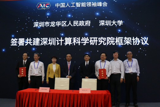 陳建民、徐晨分別代表龍華區人民政府和深圳大學簽署合作共建深圳計算科學研究院框架協議。根據協議,研究院將落戶龍華。深圳大學將為研究院提供全方位的支持,包括必要的建設和運行經費、辦公空間、研究生名額,并鼓勵研究院與龍華區的合作。龍華區人民政府將在政策法規規定的范圍內,向研究院提供場地裝修費扶持和一定期限的房租扶持;支持研究院爭取國家、省、市的政策資金支持,在政策法規規定的范圍內給予相應資金配套支持;支持研究院人才引進,在政策法規規定的范圍內,對研究院職工的住(租)房提供相應的保障舉措,并對引進的高層次人才提供人才項目方面的支持。