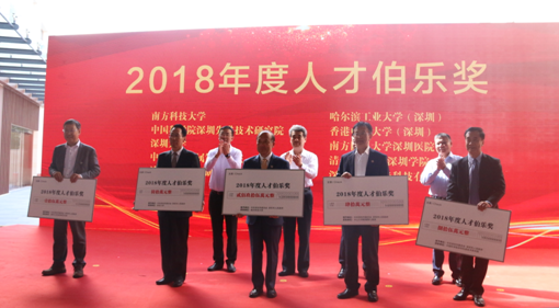 活動現場,市領導為“深圳大學”、“南方科技大學”、“深圳地鐵集團”兩家院士培養單位和“中國科學院深圳先進技術研究院”等十家2018年度人才伯樂獎獲獎單位頒發獎金。