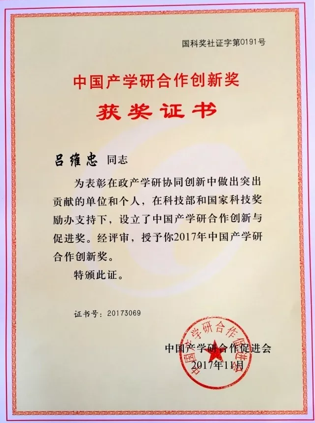 近日,我校呂維忠教授獲得“2017年中國產(chǎn)學(xué)研合作創(chuàng)新獎”,以表彰其在政產(chǎn)學(xué)研協(xié)同創(chuàng)新中所做出的突出貢獻。該獎是在科技部和國家科技獎勵辦法支持下設(shè)立。
