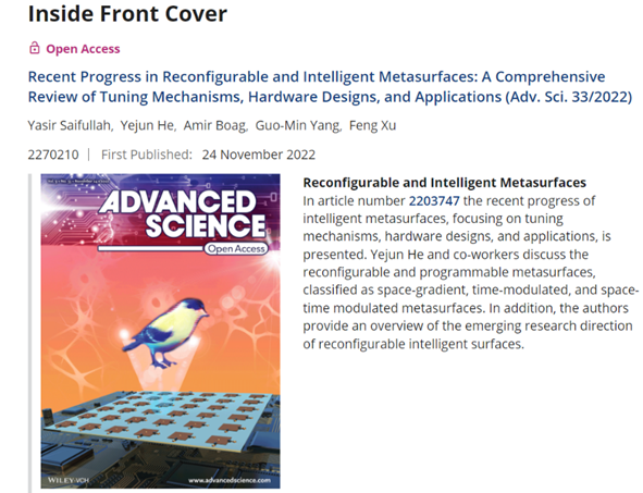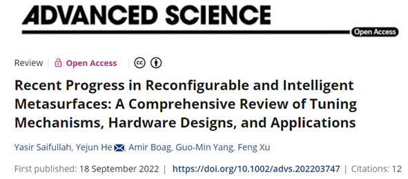 深圳大學電子與信息工程學院何業軍教授團隊在Advanced Science(影響因子15.1,中科院一區,TOP期刊)上發表了題為“Recent Progress in Reconfigurable and Intelligent Metasurfaces: A Comprehensive Review of Tuning Mechanisms, Hardware Designs, and Applications”的研究綜述論文。電子與信息工程學院博士后Yasir Saifullah為第一作者,何業軍教授為通訊作者,深圳大學為第一作者單位和通訊單位。