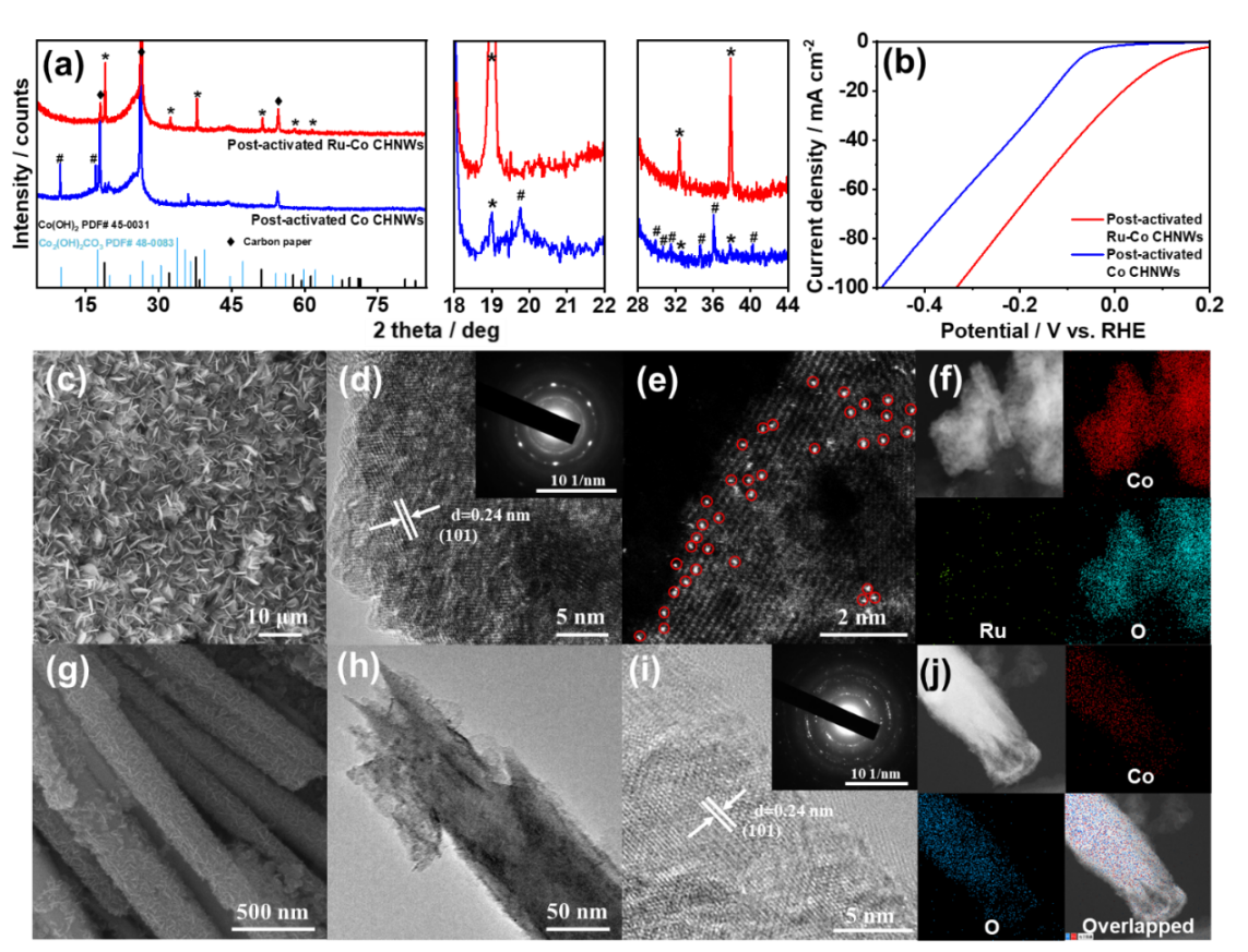 通過電位誘導自重構的方法實現氫氧化鈷上錨定Ru單原子位點,用作硝酸鹽還原制氨的催化劑。研究發現,堿式碳酸氫鈷前驅體在NO3-RR過程中會自發自重構形成更穩定的Co(OH)2,當Ru摻雜在堿式碳酸氫鈷中能夠促進自重構的發生,形成Ru單原子與Co(OH)2的復合結構,該結構顯著提升了NO3-RR制氨活性。有效提高了催化效率,為設計高性能NO3-RR制氨催化劑提供新的思路。